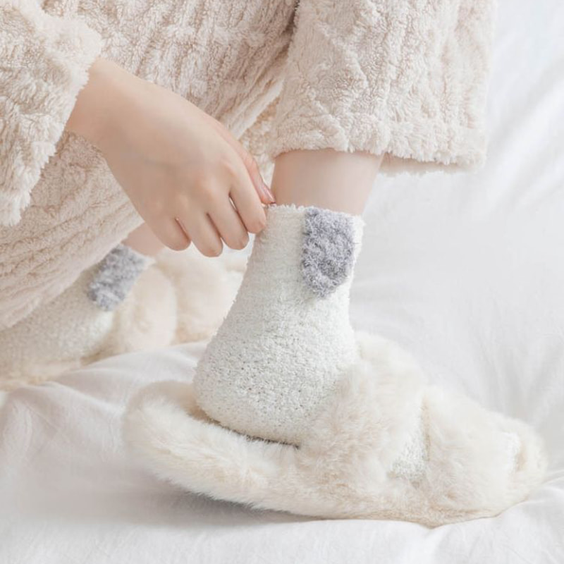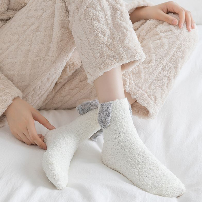 Het productontwerp bevat Japanse elementen, gekenmerkt door eenvoud, frisheid en schattigheid, die voldoen aan de esthetische behoeften van moderne jonge vrouwen. De sokken zijn versierd met driedimensionale konijnenoren, waardoor hun plezier en schattigheid vergroot, waardoor mensen hun unieke charme in één oogopslag voelen. Gemaakt van koraal fleece materiaal, dat zacht, comfortabel en warm is, is zeer geschikt voor het dragen van in huisomgevingen. Tegelijkertijd kan de textuur van Coral Fleece ook een goede tactiele ervaring aan de voeten brengen. Sommige delen van de sokken zijn ontworpen met half flanel, die niet alleen de warmte van Coral Fleece behouden, maar ook zijn ademend vermogen en flexibiliteit vergroot, waardoor het dragen comfortabeler wordt.